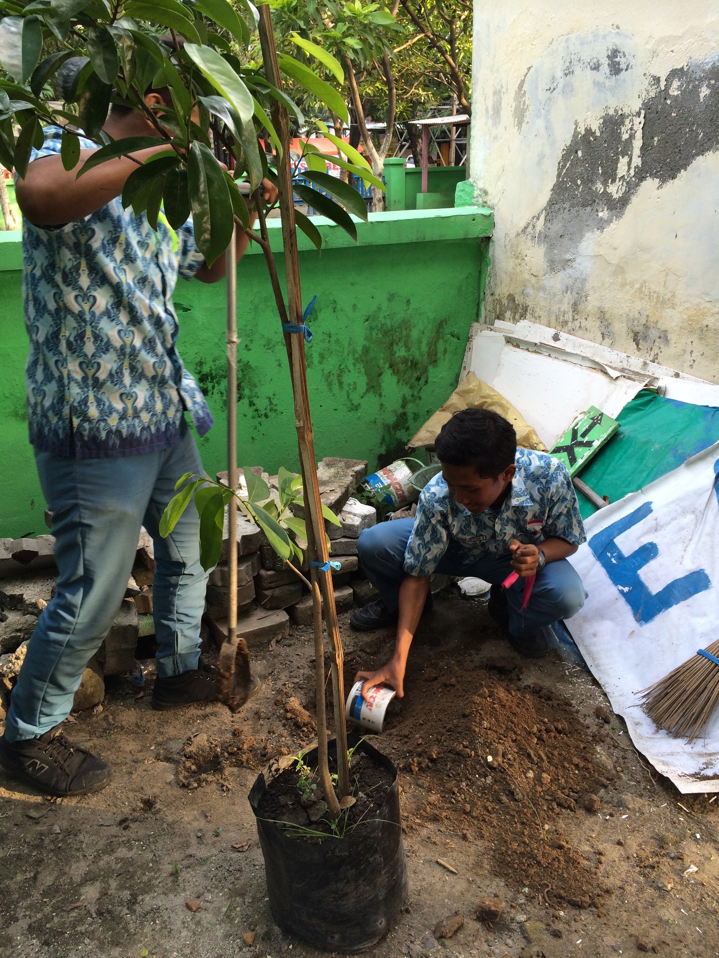High school students in Surabaya planting trees near their campus on Hari Air (Water Day) - Credit: Danau Tanu