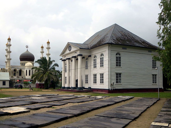Given the vast distances involved and sparse shipping, there was very little return migration by Africans, Indians, Chinese or Javanese. As a result, Suriname is now a thoroughly multicultural society made up of descendants of indigenous native peoples, African slaves, Dutch and other Europeans, Javanese, Chinese and Indian contract labourers, as well as immigrants from neighbouring South American countries. At one stage the country was also home to the world’s largest Jewish community. This resulted from a decision in 1639 by the English colonial government of Suriname to allow increasing numbers of Spanish and Portuguese Jews from the Netherlands, Portugal and Italy to settle there. They were later joined by Jews from elsewhere, but after World War II their numbers declined substantially. The generally harmonious nature of Suriname society is reflected in Paramaribo, the capital, where the country’s largest synagogue sits beside its largest mosque.