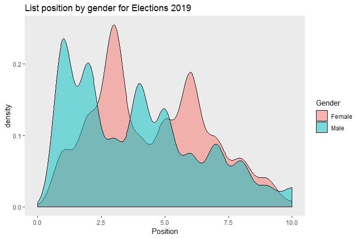 Ditinjau dari posisi nomor urut di kertas suara, elektabilitas perempuan anjlok seiring dengan semakin besarnya nomor urut, meskipun secara teori, sistem daftar-terbuka memungkinkan orang untuk terpilih dari nomor urut mana pun.. Namun,terbukti bahwa berada di nomor urut teratas akan sangat mempengaruhi peluang untuk terpilih, dan caleg laki-laki mendominasi nomor urut 1. Secara statistik, semakin jauh ke bawah di daftar caleg maka peluang untuk menang bagi caleg perempuan menyusut 63,5 persen. (Secara keseluruhan, caleg laki-laki dan perempuan, elektabilitasnya akan merosot 52.3 persen bila dicalonkan dari nomor urut yang semakin ke bawah.) Salah satu penyebabnya adalah adanya anggapan dari pemilih bahwa caleg di posisi 1 merupakan caleg yang paling kompeten dibandingkan caleg dengan nomor urut di bawahnya. Namun, ‘ini juga soal kenyamanan’, ujar seorang anggota legislatif dari Partai Demokrasi Indonesia-Perjuangan (PDI-P) yang menilai bahwa ‘akan lebih memudahkan buat pemilih untuk mencoblos caleg yang berada di posisi teratas di kertas suara.’