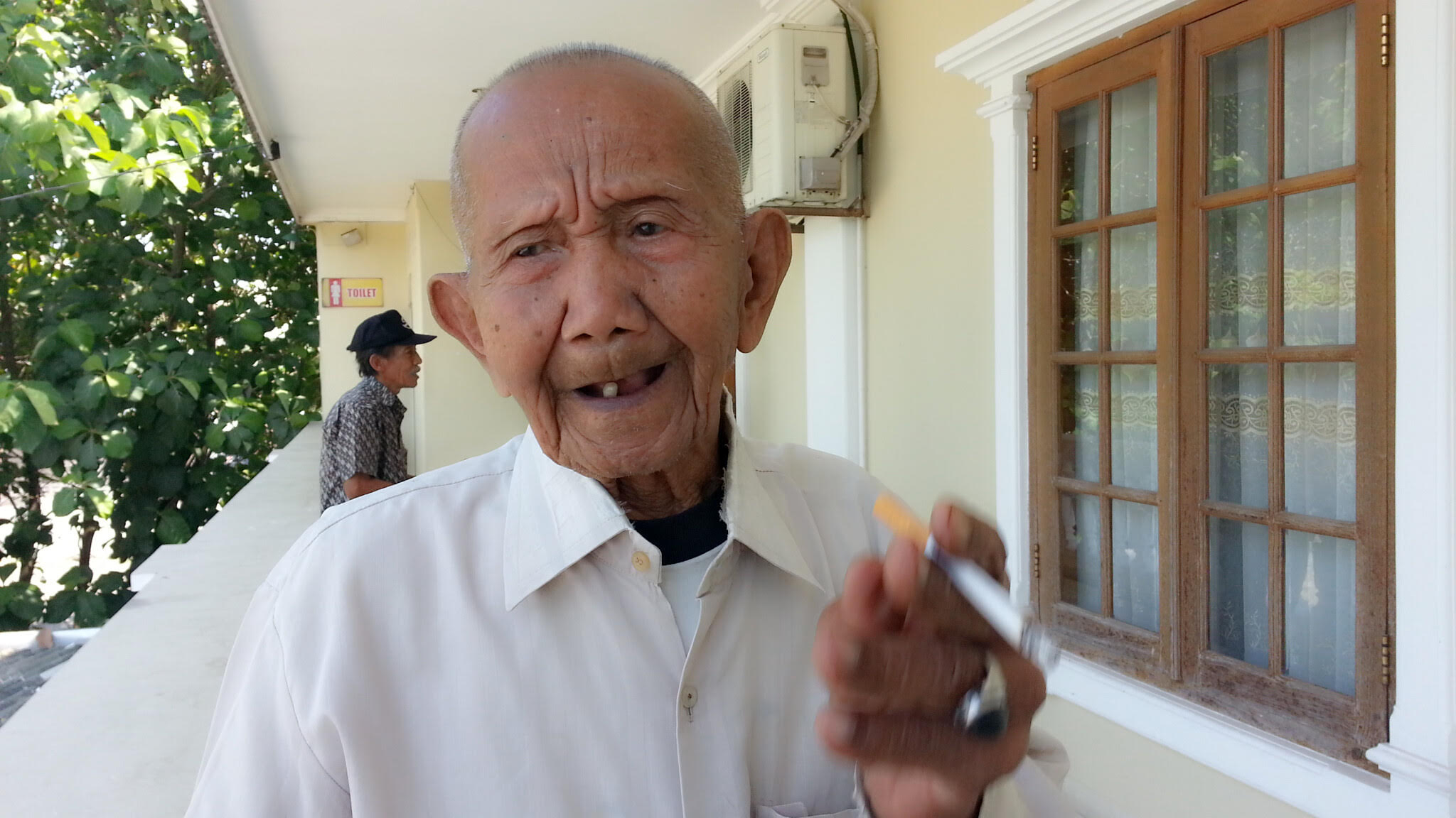 Mr. Ngismail (107 yrs old he says) a 1965 survivor from Klaten, Central Java, 2014